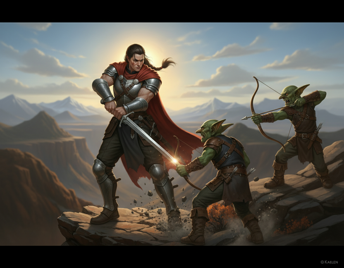 The sudden ambush plunged them into a brutal, close-quarters melee. The air filled with the twang of bowstrings, the whistle of arrows, and the savage yelps of the grotesque creatures. Drayfis, despite his magical prowess, found himself unexpectedly targeted, his very being transformed into a grim pincushion as several shafts found purchase in his armor and flesh, his lifeblood threatening to ebb away. The fight was a desperate, chaotic dance of survival, a testament to the goblins' ferocity. It was Radahn, with a speed born of urgent compassion, who tore through the fray, pressing a precious healing potion to Drayfis’s lips, snatching the warlock from the very precipice of death. Slowly, painfully, the tide turned. The adventurers, battered but unbowed, eventually overwhelmed their tormentors, their weapons finding their marks with grim finality.